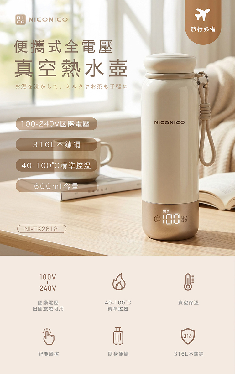 新品上市~NICONICO便攜式全電壓真空熱水壺NI-TK2618