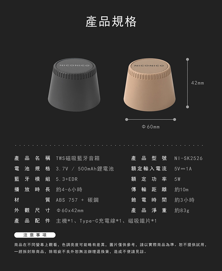 【NICONICO】 TWS磁吸藍牙音箱NI-SK2526