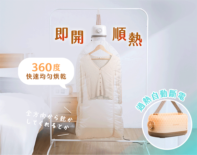 - 360度熱風循環,恆溫氣流柔和烘衣