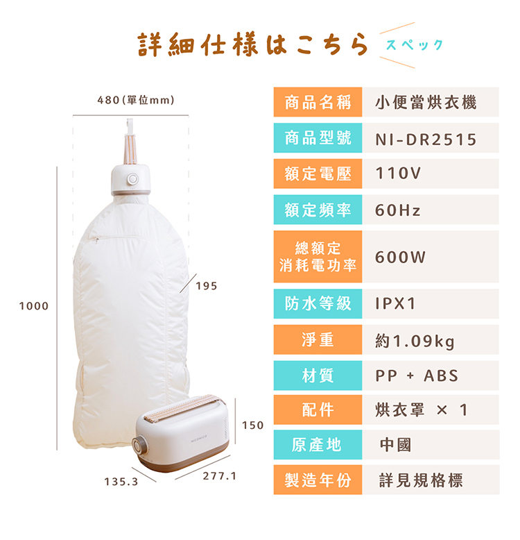 【NICONICO】美型收納式UV烘衣機NI-DR2515