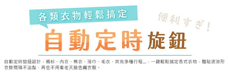 - 自動定時旋鈕,搞定各類衣物