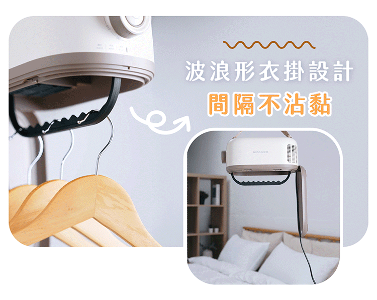 - 波浪形衣掛設計,間隔衣物不沾黏