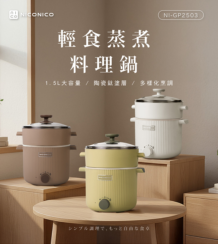【NICONICO】輕食蒸煮陶瓷鈦料理鍋NI-GP2503