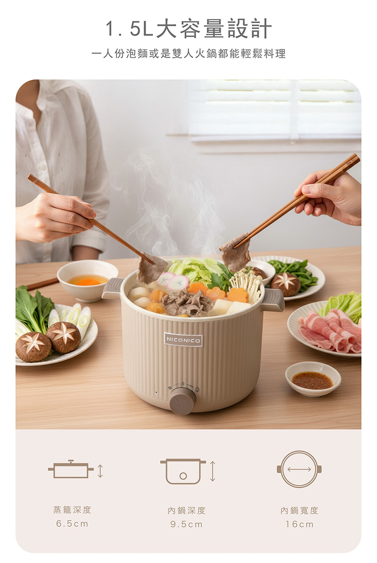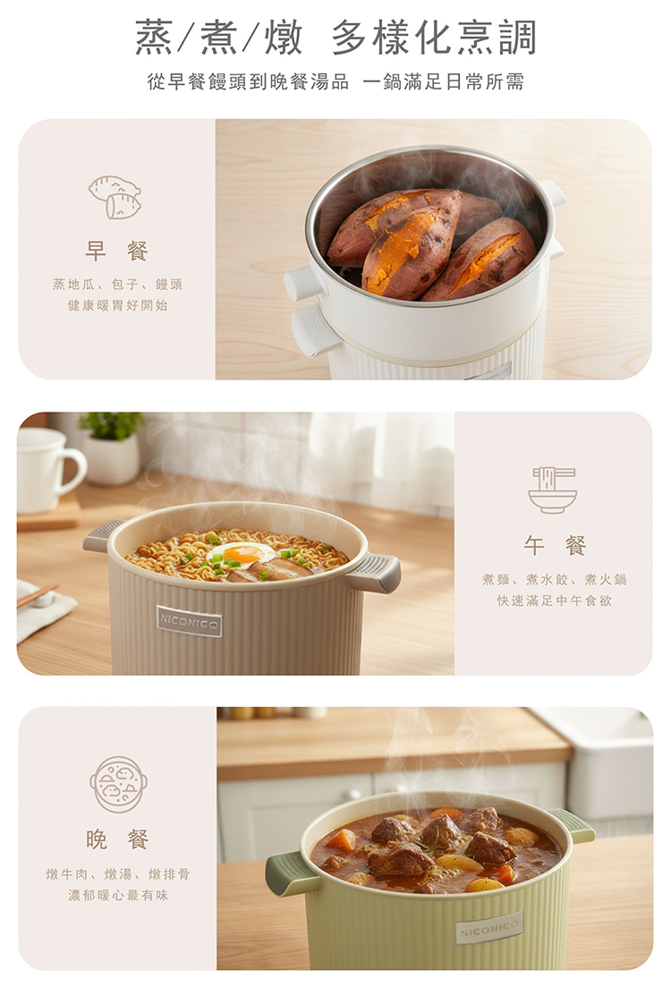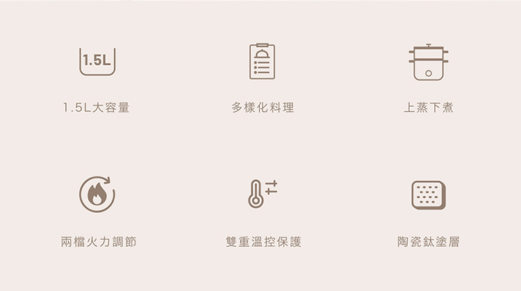 • 多樣化料理,燉、煮、煎、炒、炸、蒸