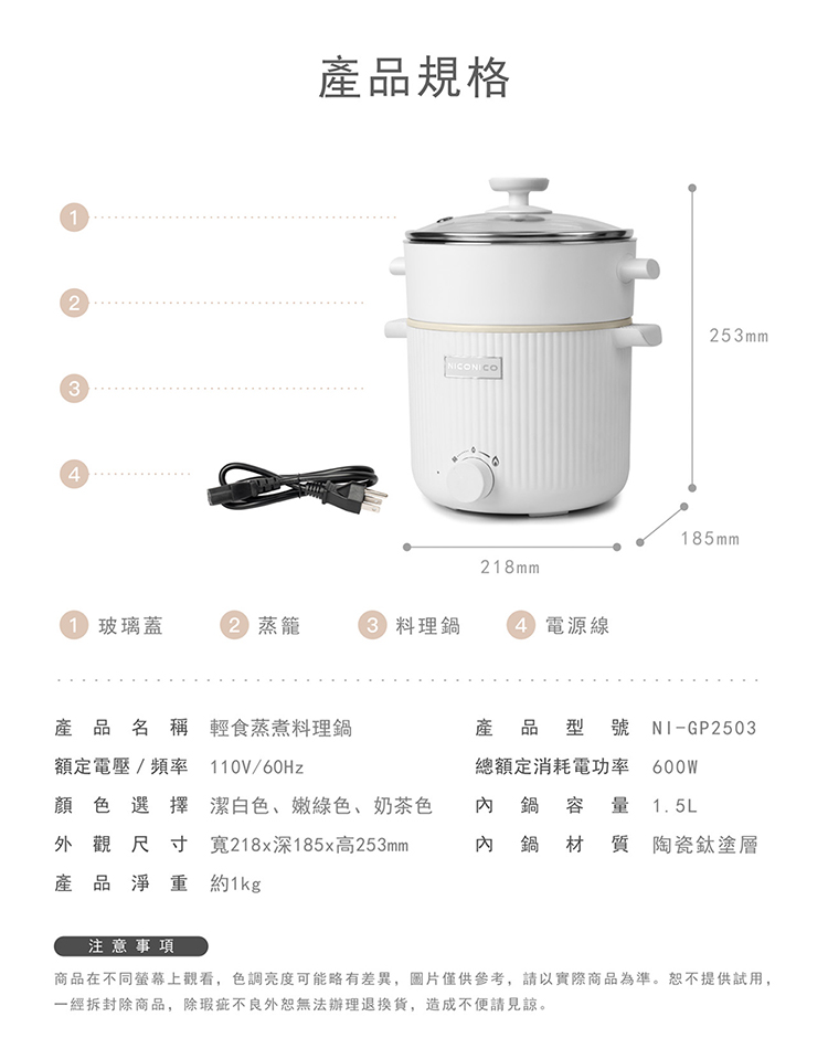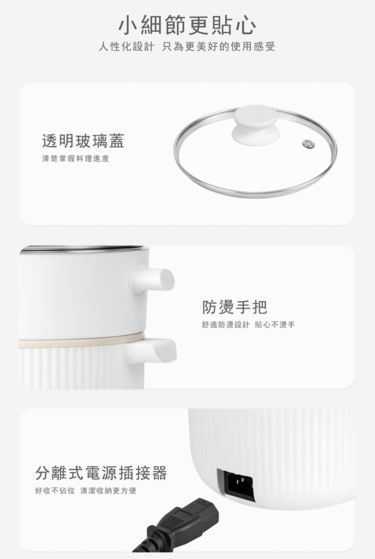 • 透明玻璃鍋蓋設計,烹調狀況一目瞭然