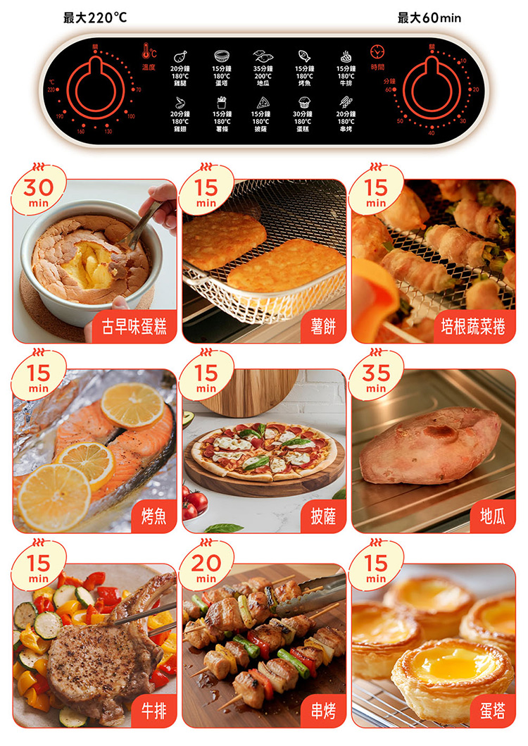 • 內腔菱格紋設計,讓食材受熱更均勻