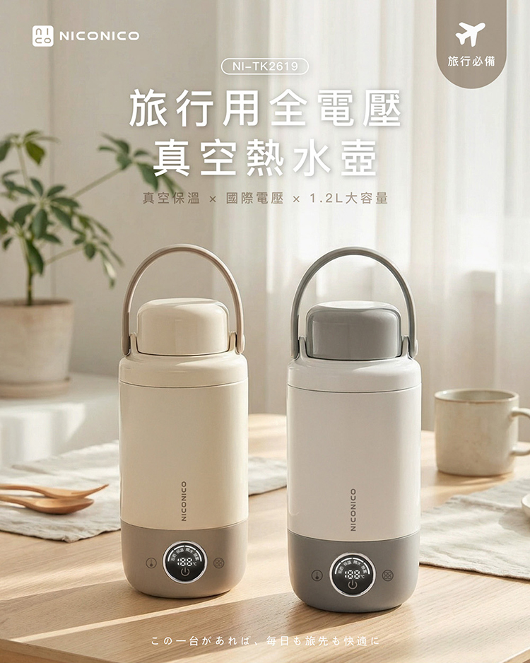 【NICONICO】旅行用全電壓真空熱水壺NI-TK2619