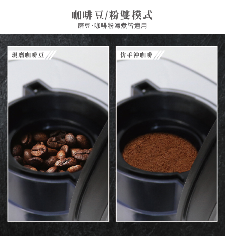• 咖啡豆/粉雙模式,磨豆、咖啡粉濾煮皆適用