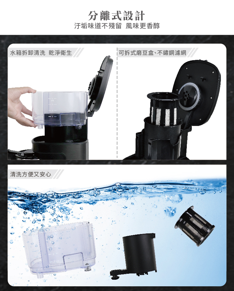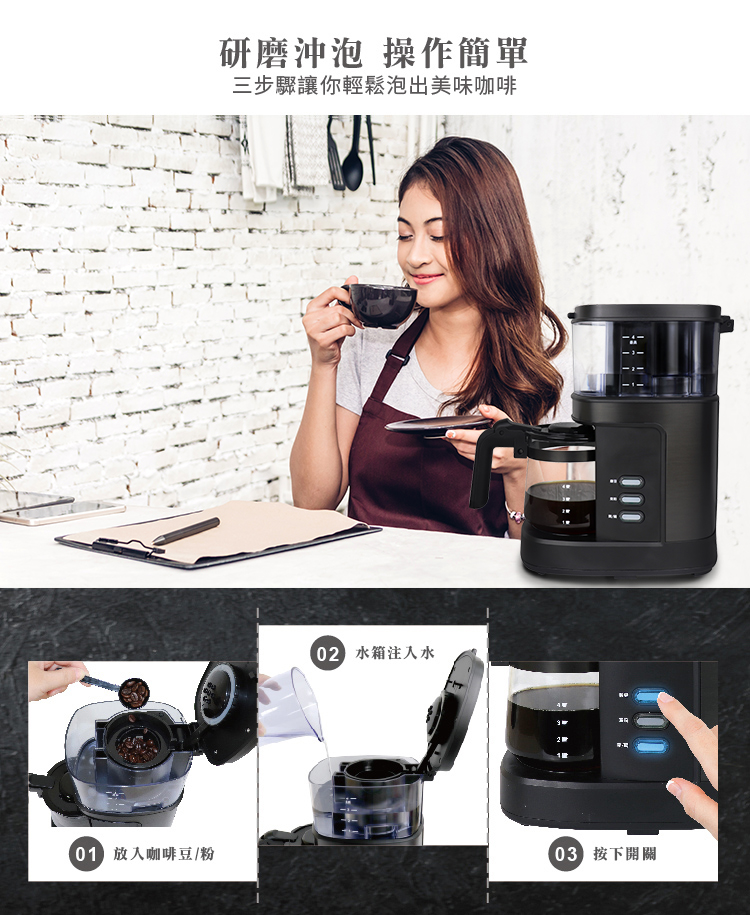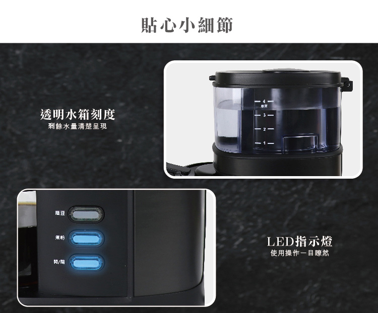 • 簡單按鈕操作,磨豆、煮粉、開關 輕鬆操作