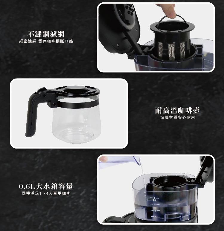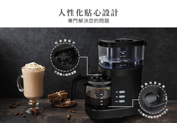 • 防滴漏設計,拿起咖啡壺咖啡不滴漏