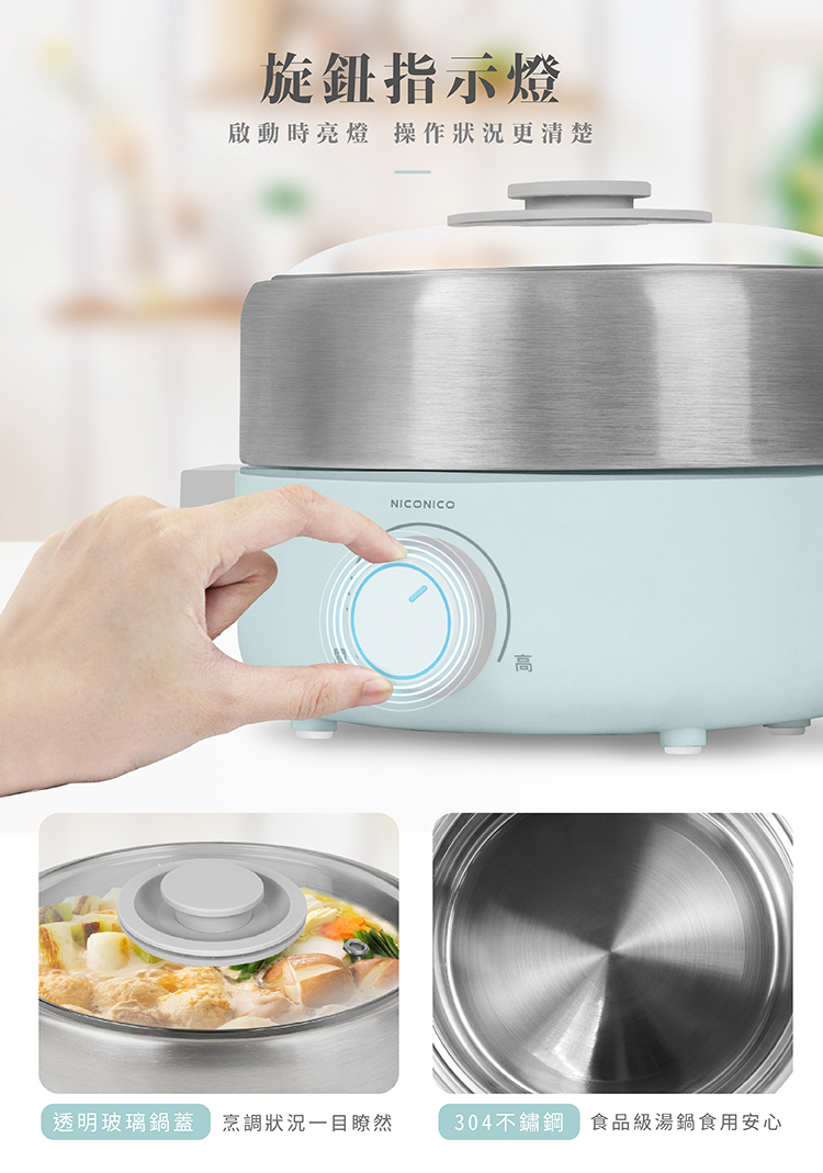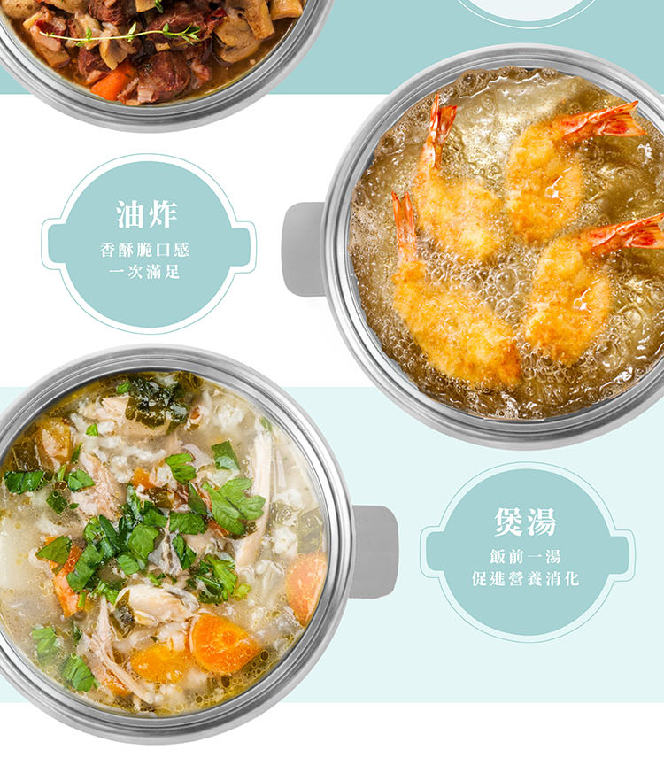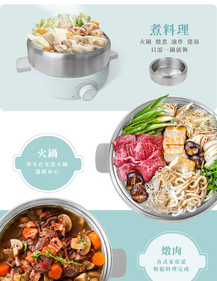 • 多功能料理鍋:火鍋、油炸、燉煮、煲湯等
