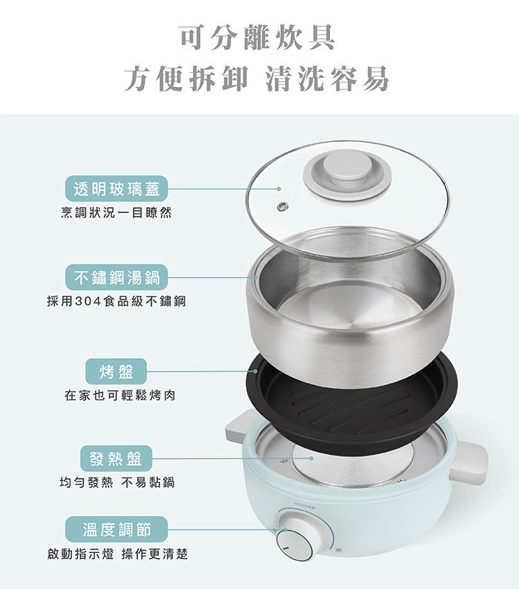 • 可分離的炊具,拆卸方便、清洗方便