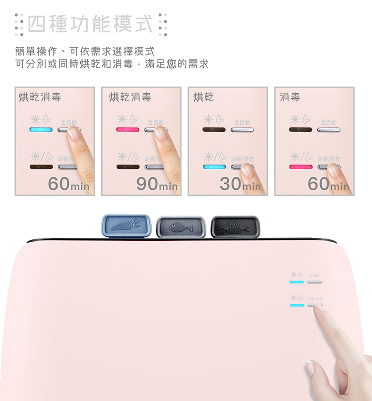 • 4種風乾除菌功能可選