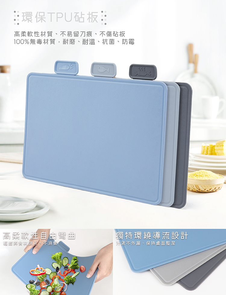 • 食用級高密度TPU抗菌材質砧板