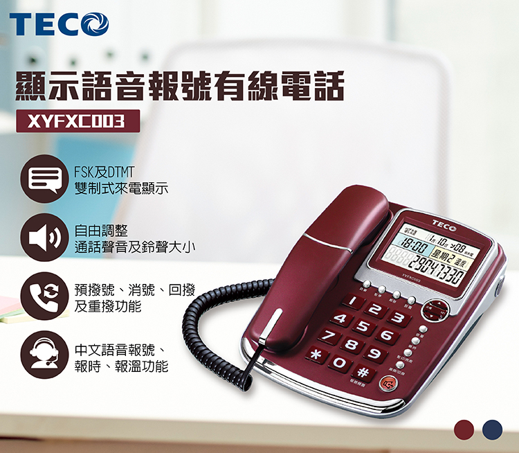 商品名稱:東元顯示語音報號有線電話XYFXC003