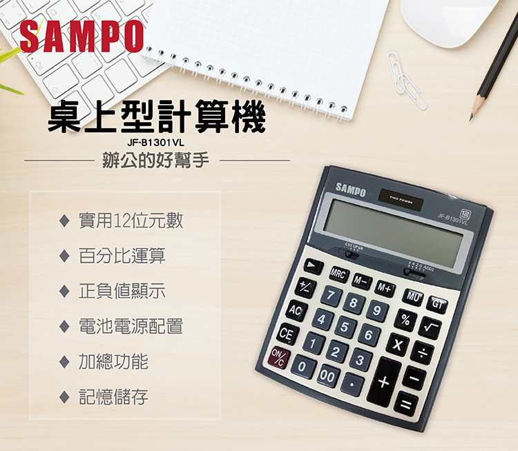 商品名稱:聲寶桌上型計算機JF-B1301VL