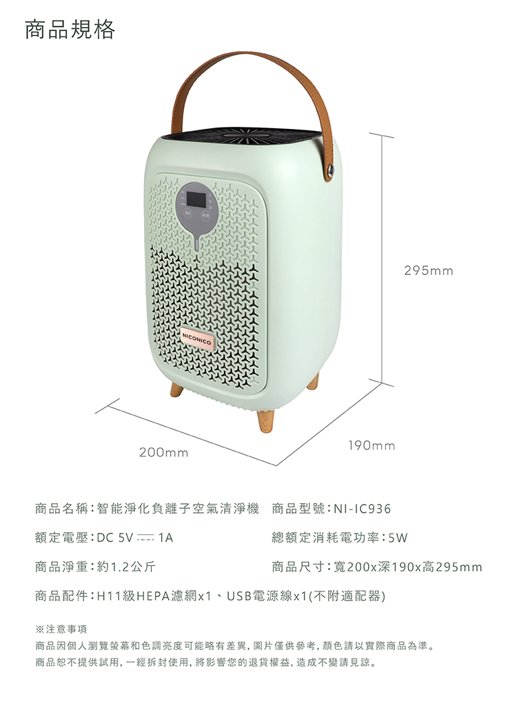 【NICONICO】智能淨化負離子空氣清淨機NI-IC936
