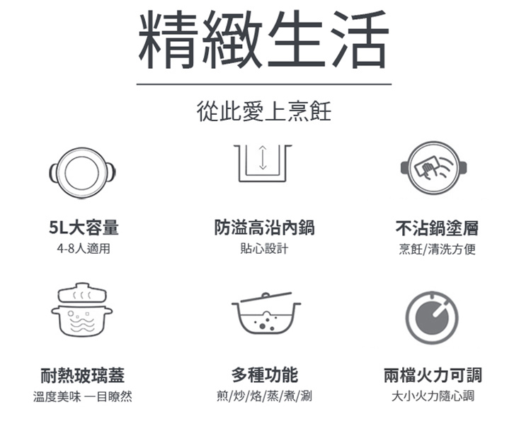 • 料理多功能,煎、炒、燉、煮