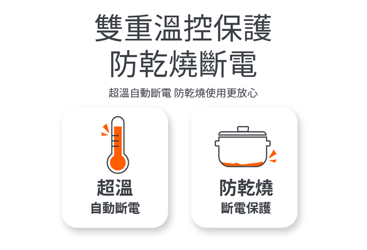 • 具防乾燒功能,使用更安全
