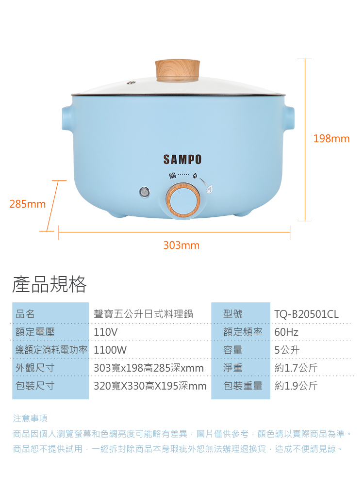 【聲寶】五公升日式多功能料理鍋TQ-B20501CL