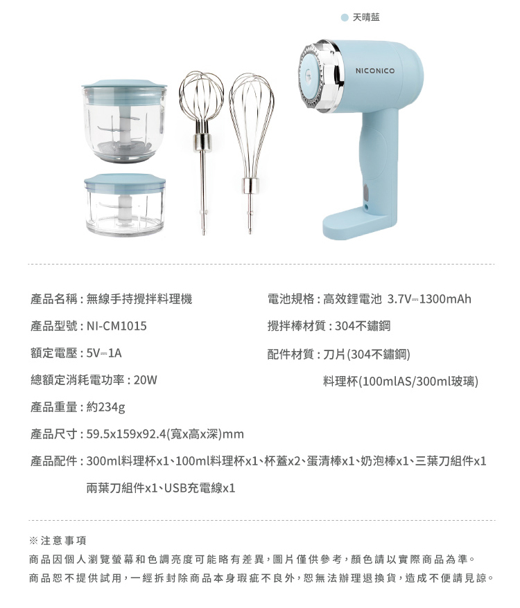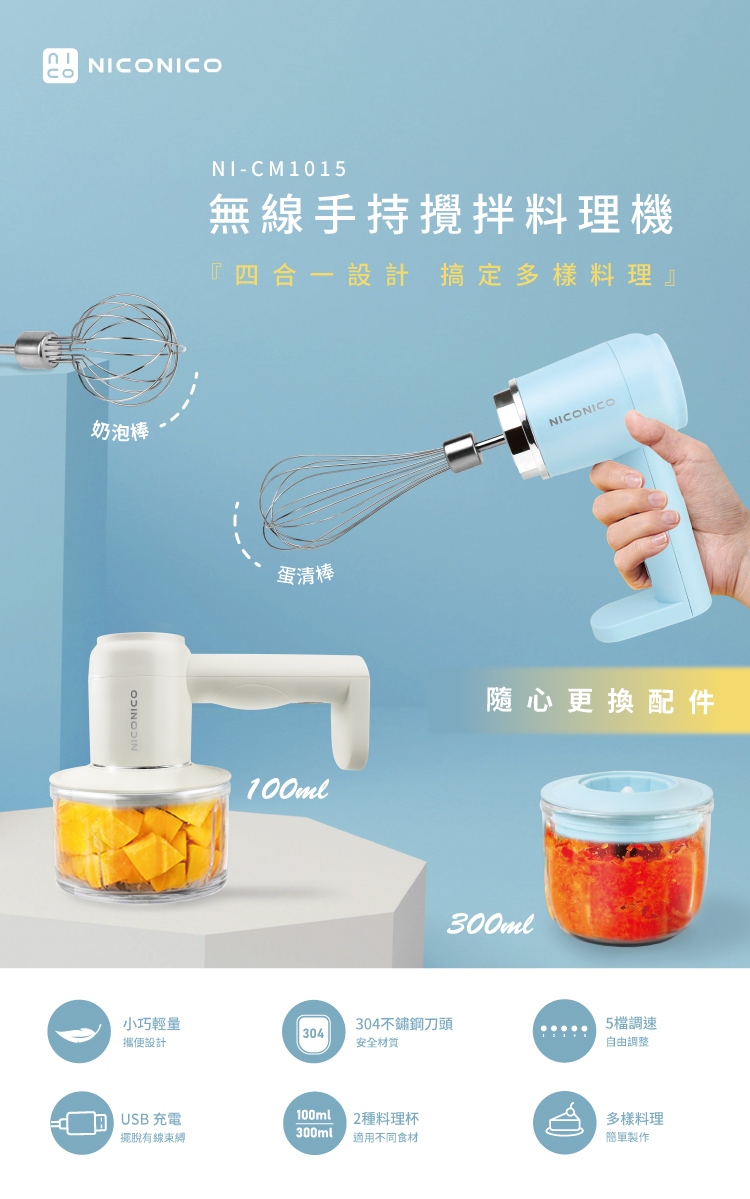 【NICONICO】無線手持攪拌料理機NI-CM1015