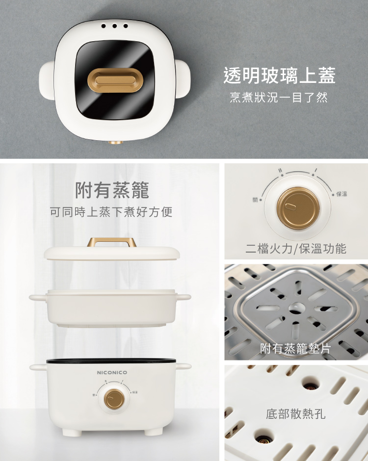 • 附蒸籠,上蒸下煮同時進行