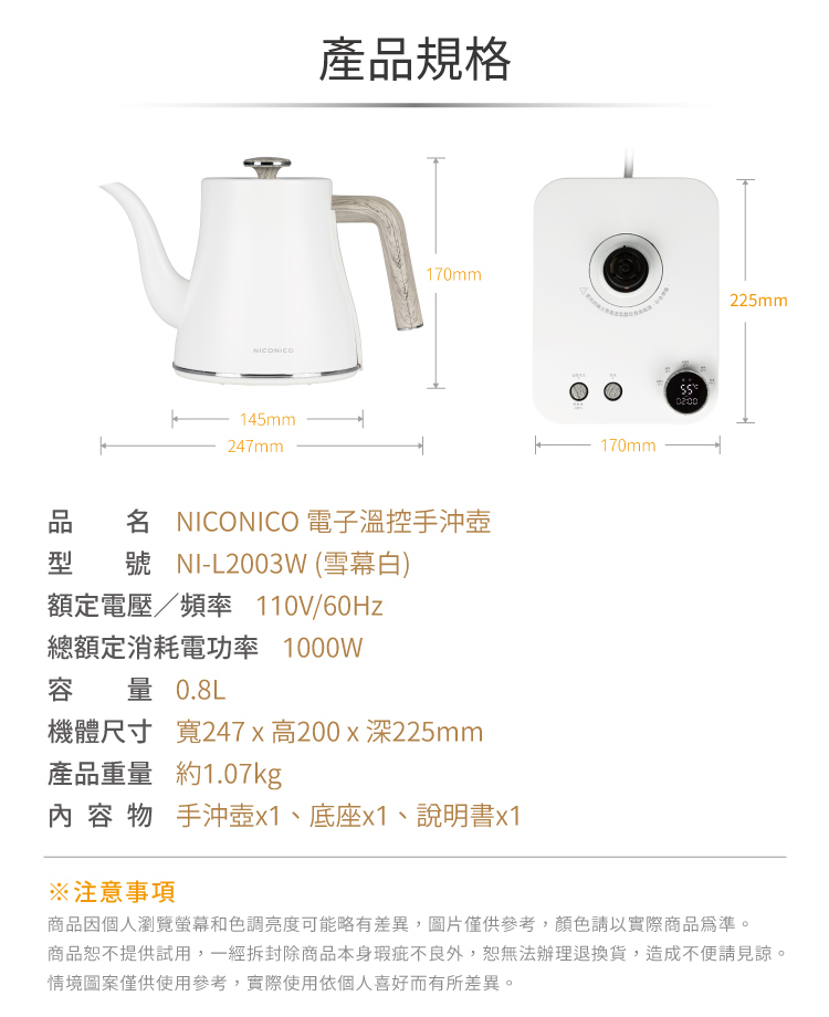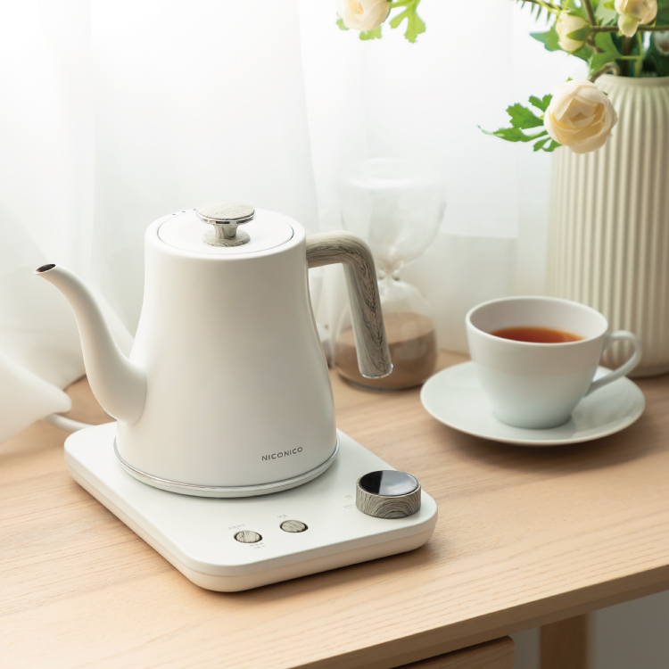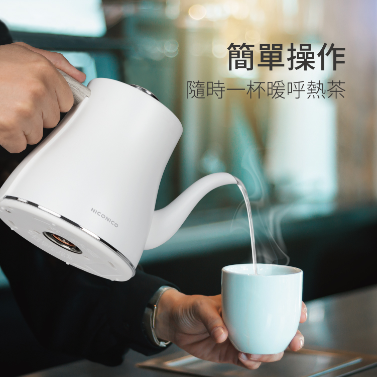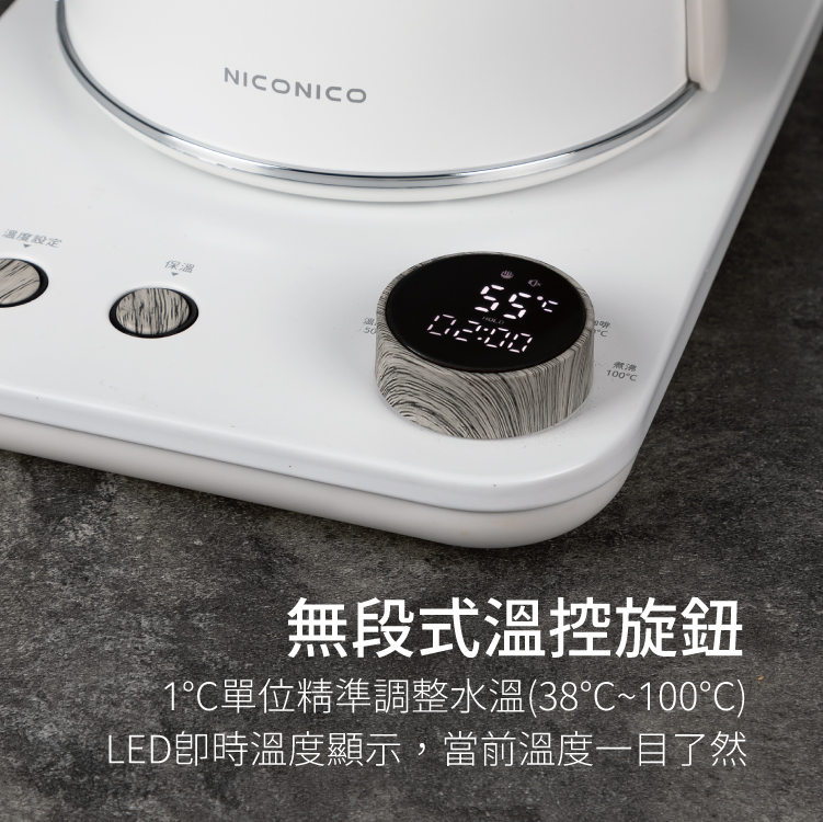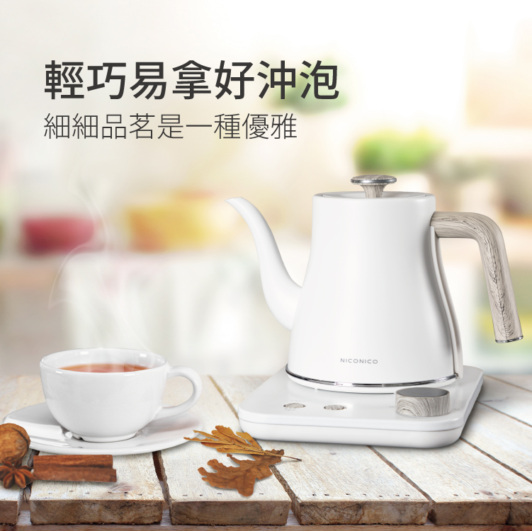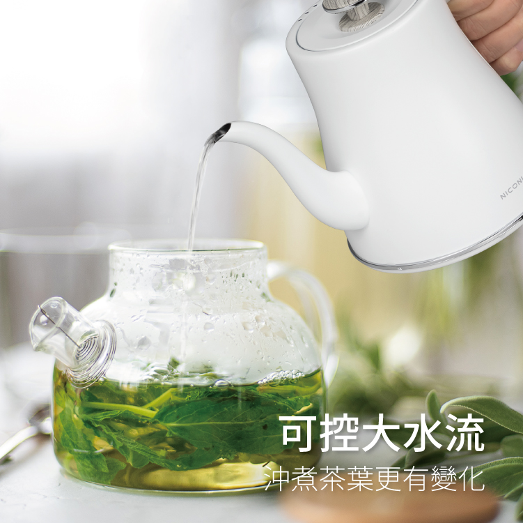【NICONICO】電子溫控手沖壺NI-L2003W 雪幕白(寬口)