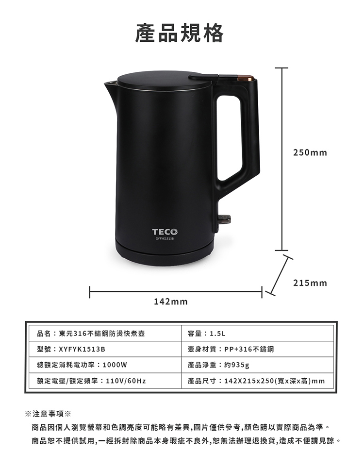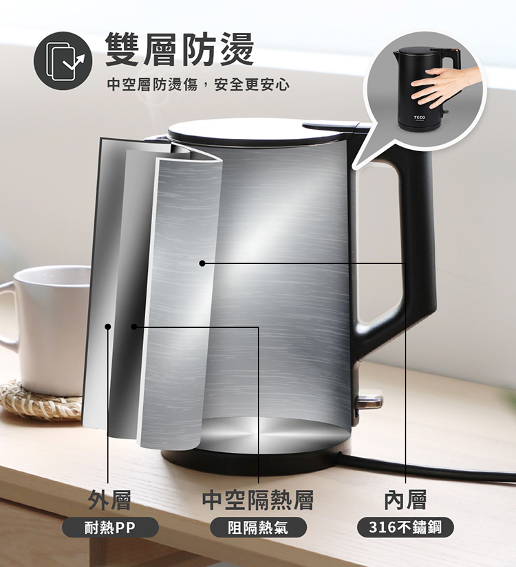 【東元】316不鏽鋼雙層防燙快煮壺XYFYK1513B