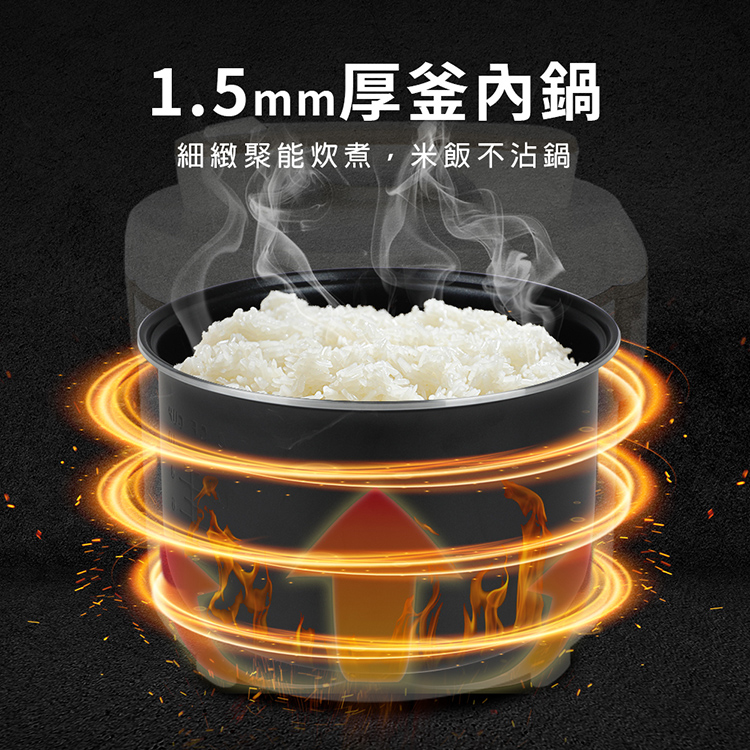 • 厚釜不沾內鍋,智能炊煮不黏鍋