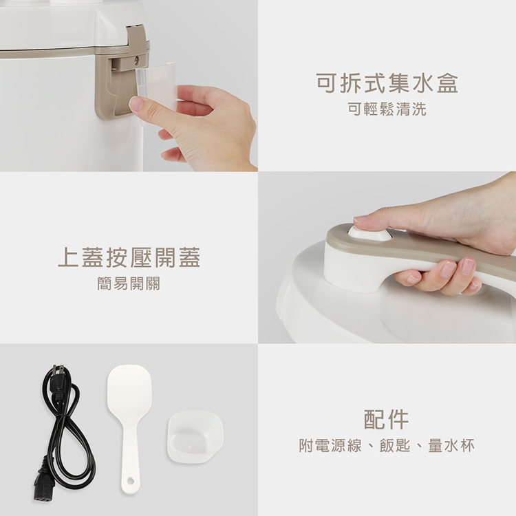 • 可拆式蒸氣閥、集水盒,易沖洗好清潔