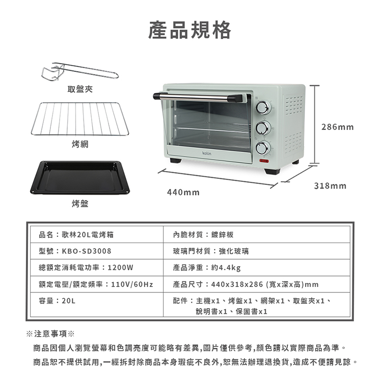 【歌林】 20公升電烤箱KBO-SD3008