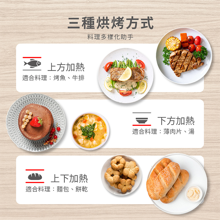 • 上下火調整,烘烤更自由
