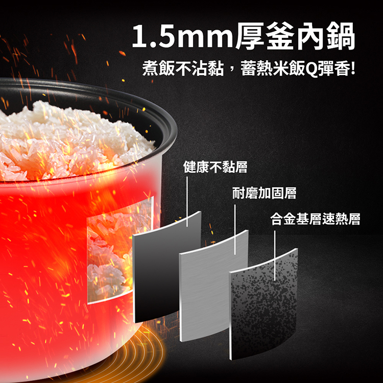 • 厚釜不沾內鍋,智能炊煮不黏鍋