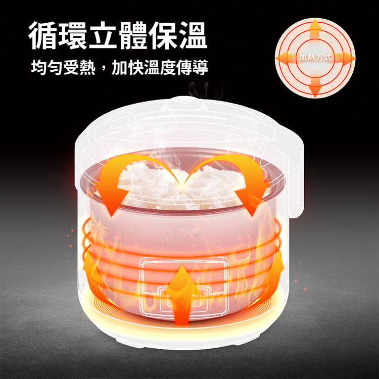 • 均勻受熱直達米芯,鎖住水分與新鮮