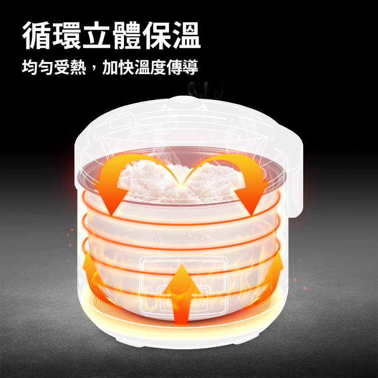 • 均勻受熱直達米芯,鎖住水分與新鮮