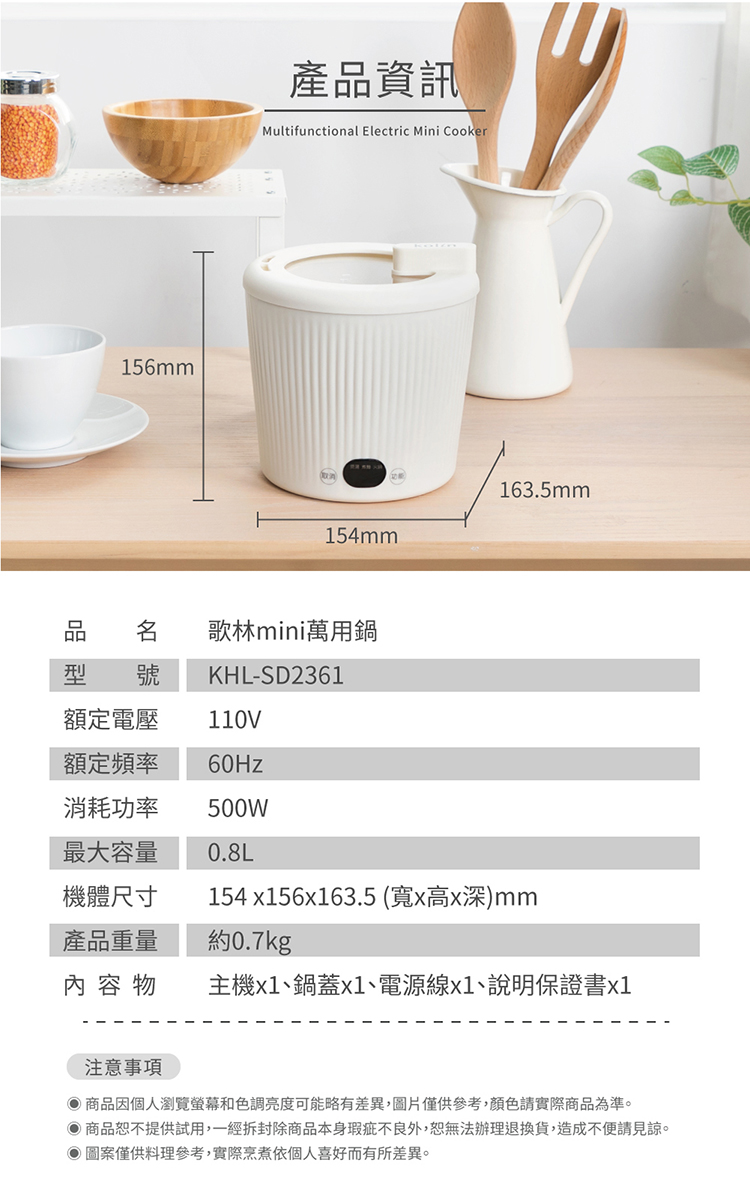 【歌林】mini陶瓷萬用鍋KHL-SD2361