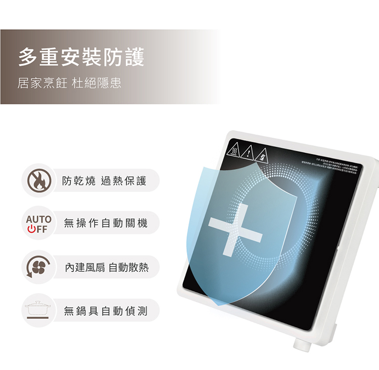 • 無鍋偵測設計,無操作自動關機保護
