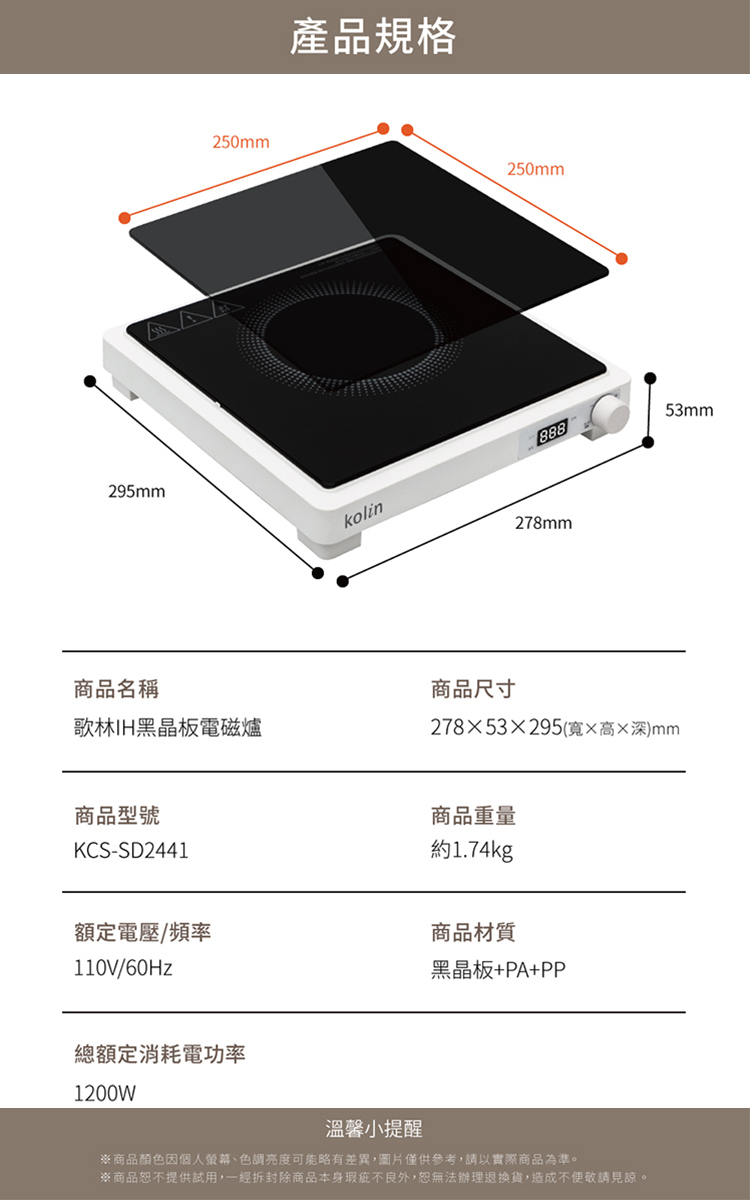 【歌林】 IH黑晶板電磁爐KCS-SD2441