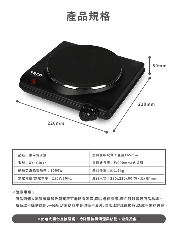 【東元】黑晶鑄鐵電子爐XYFYJ015