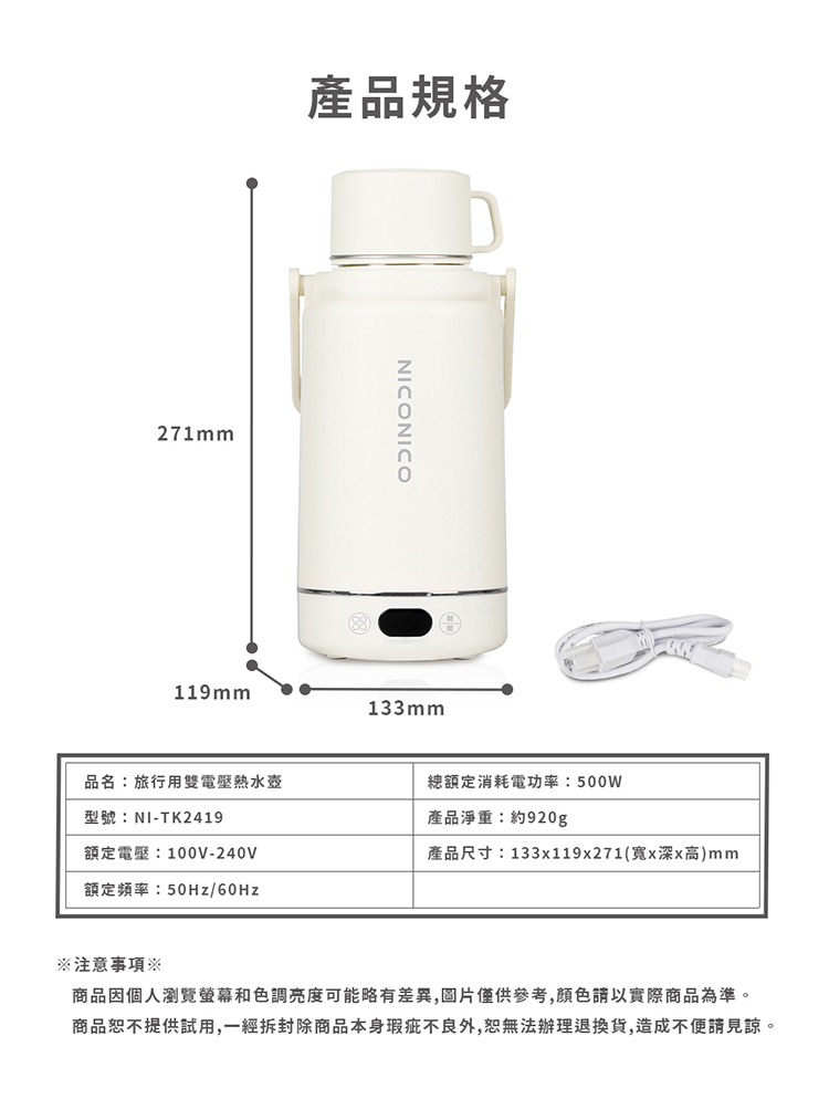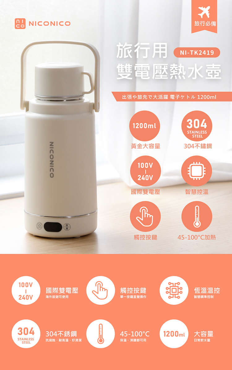 【NICONICO】旅行用雙電壓熱水壺NI-TK2419