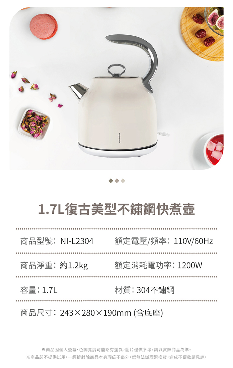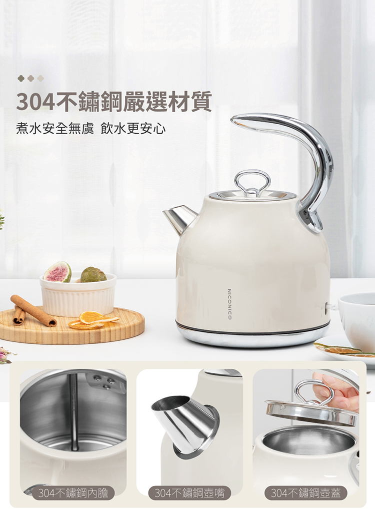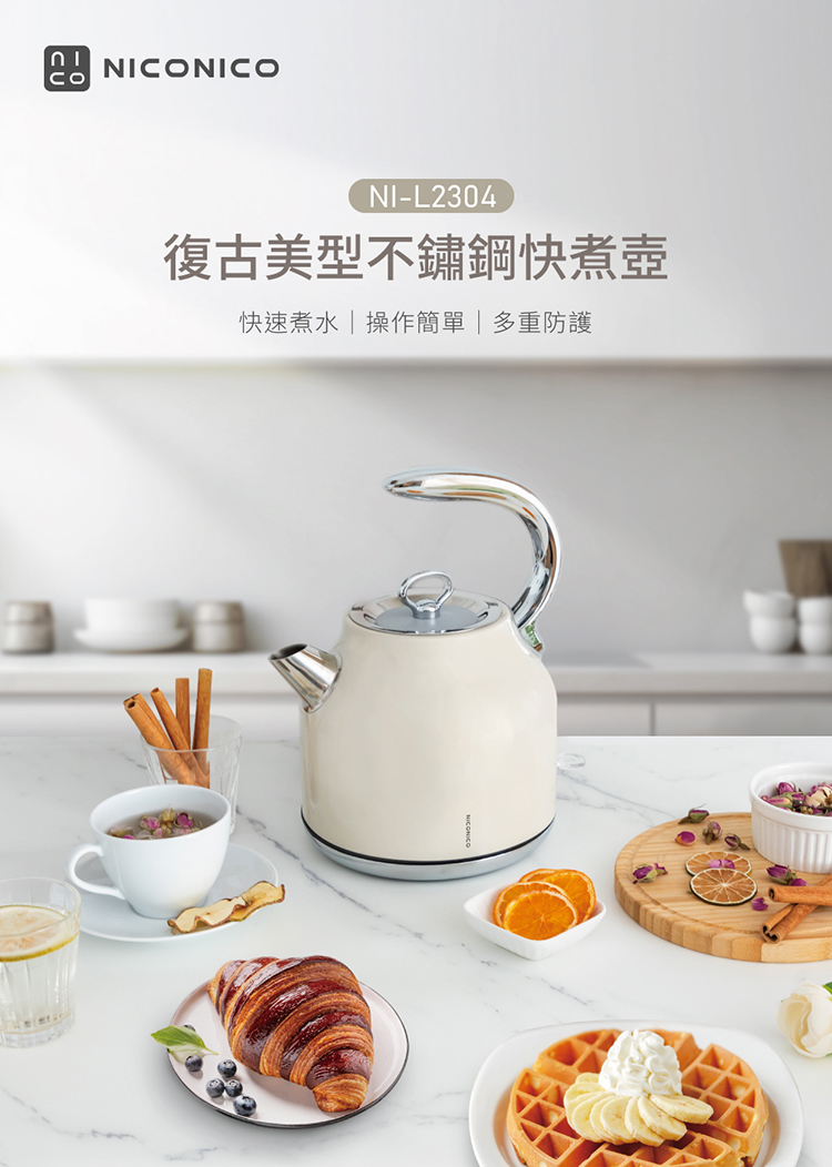 【NICONICO】1.7L復古美型不鏽鋼快煮壺NI-L2304