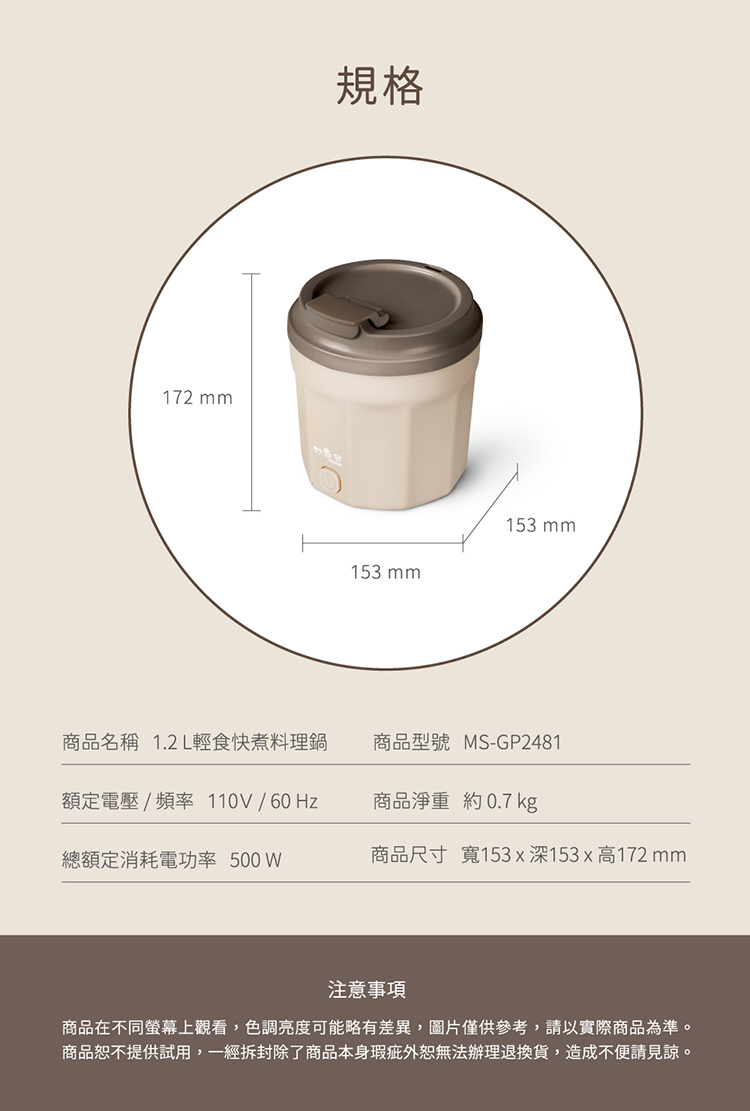 - 碗型設計,煮好直接吃更方便