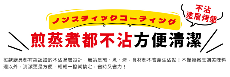 - 不沾塗層,清洗更輕鬆