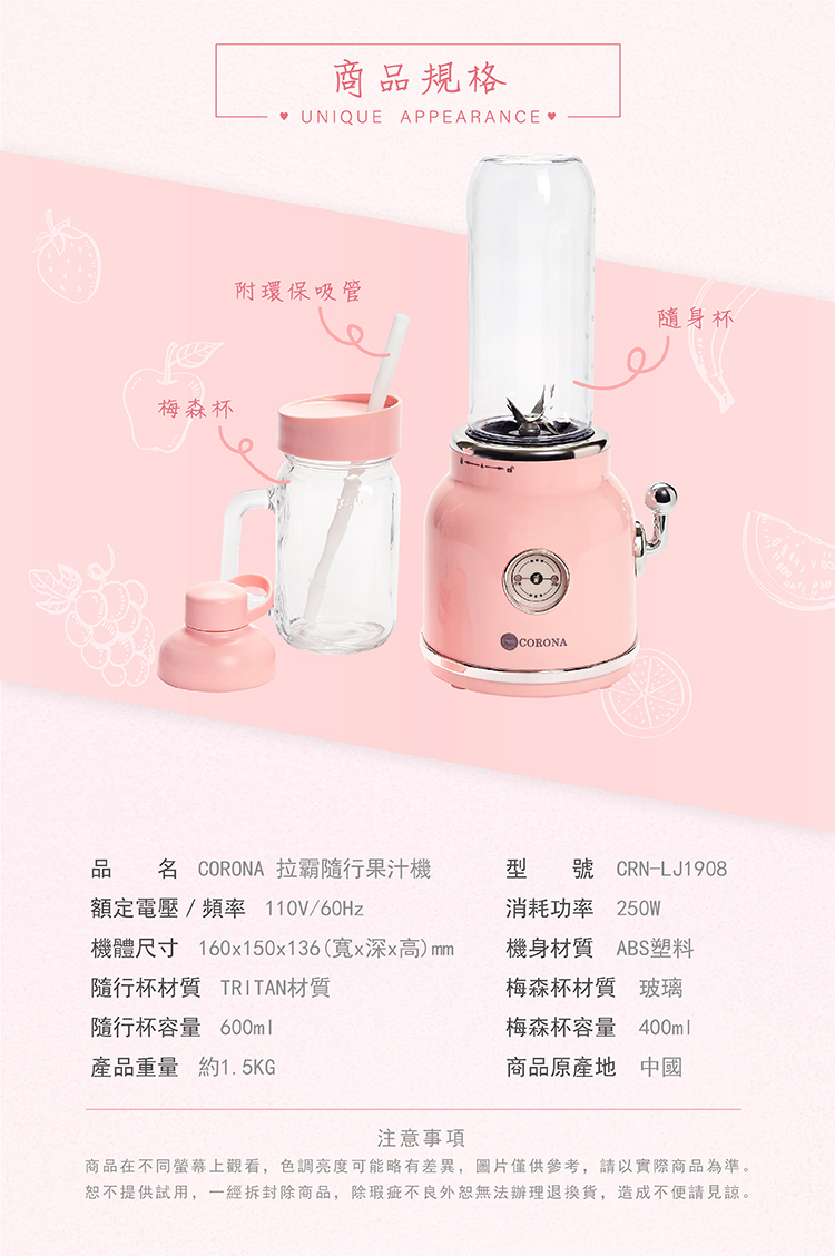 【CORONA】拉霸隨行果汁機CRN-LJ1908