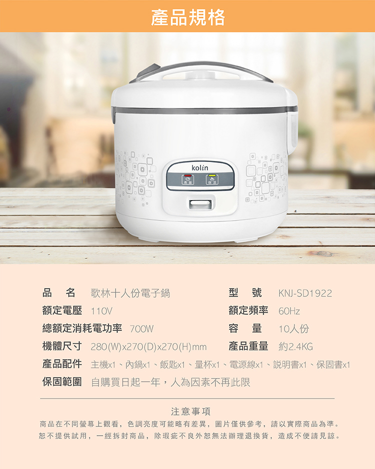 【歌林】十人份電子鍋KNJ-SD1922