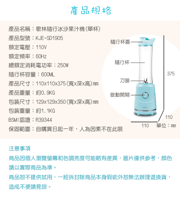 【歌林】隨行冰沙果汁機-單杯組KJE-SD1905