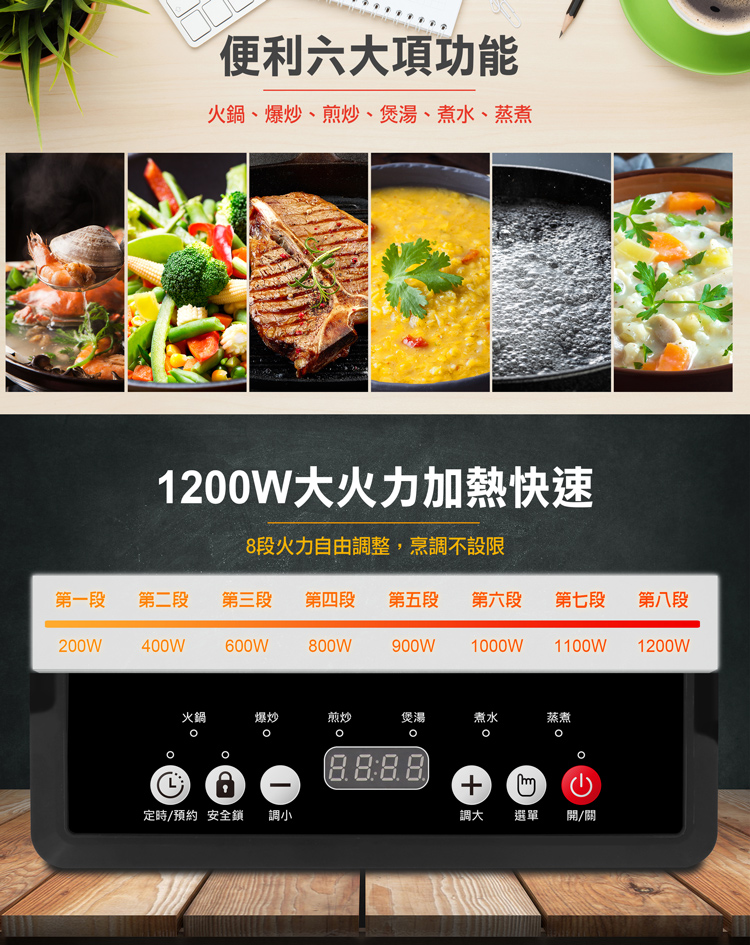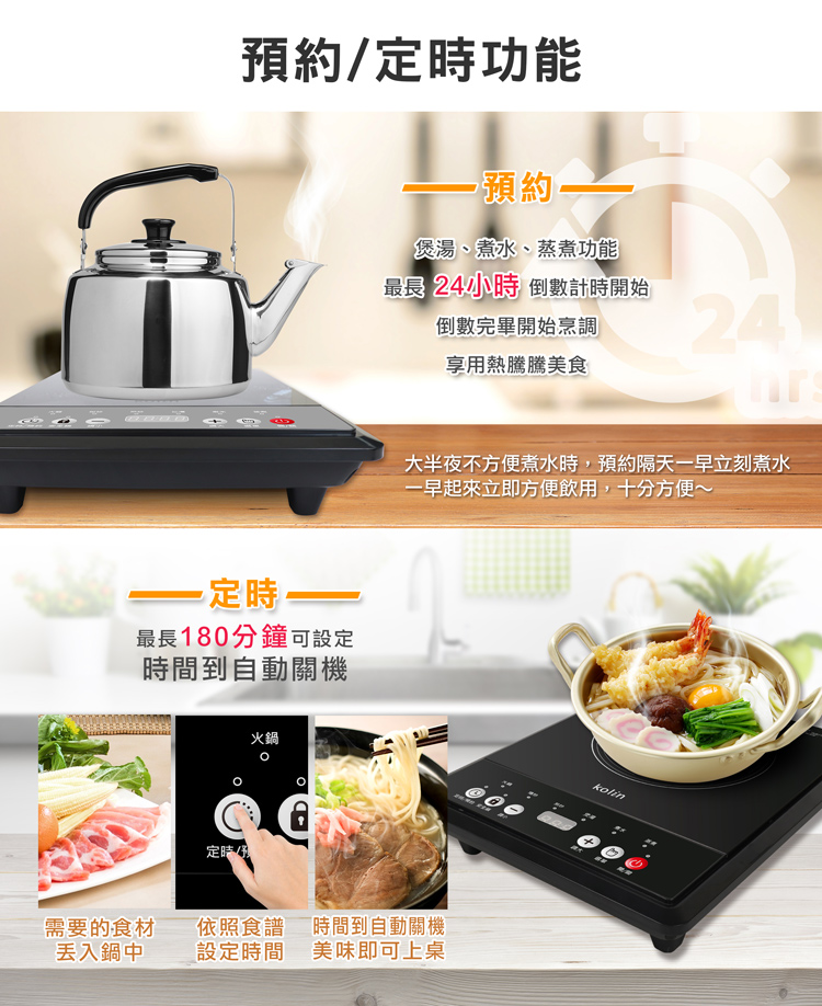 • 8段火力/180分鐘定時/24小時預約功能