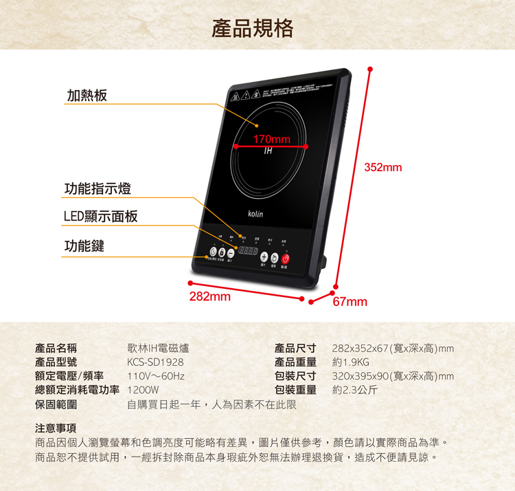 【歌林】IH電磁爐KCS-SD1928