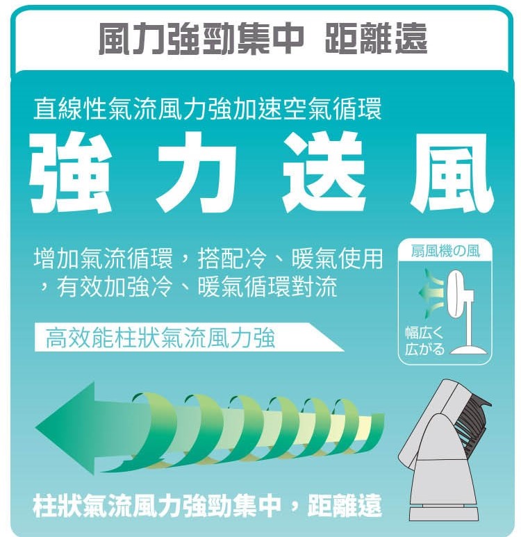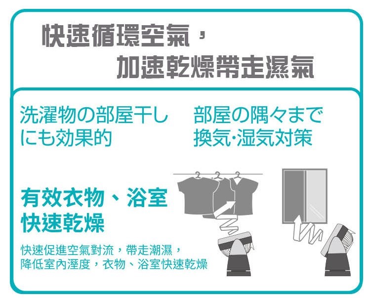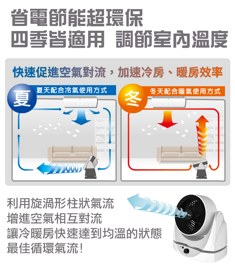 • 搭配冷、暖氣使用,有效加強冷、暖氣循環對流