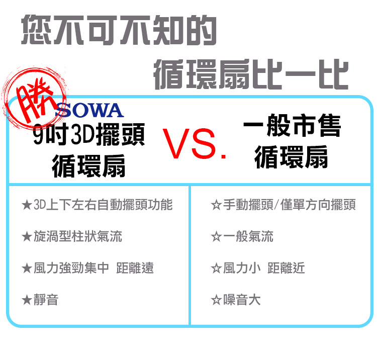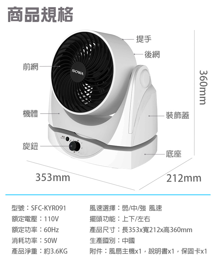 【首華】9吋3D擺頭循環扇SFC-KYR091